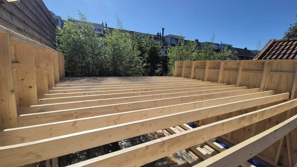 De balken op maat, erin leggen, en dan denk je: lekker bezig!